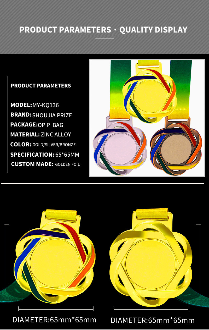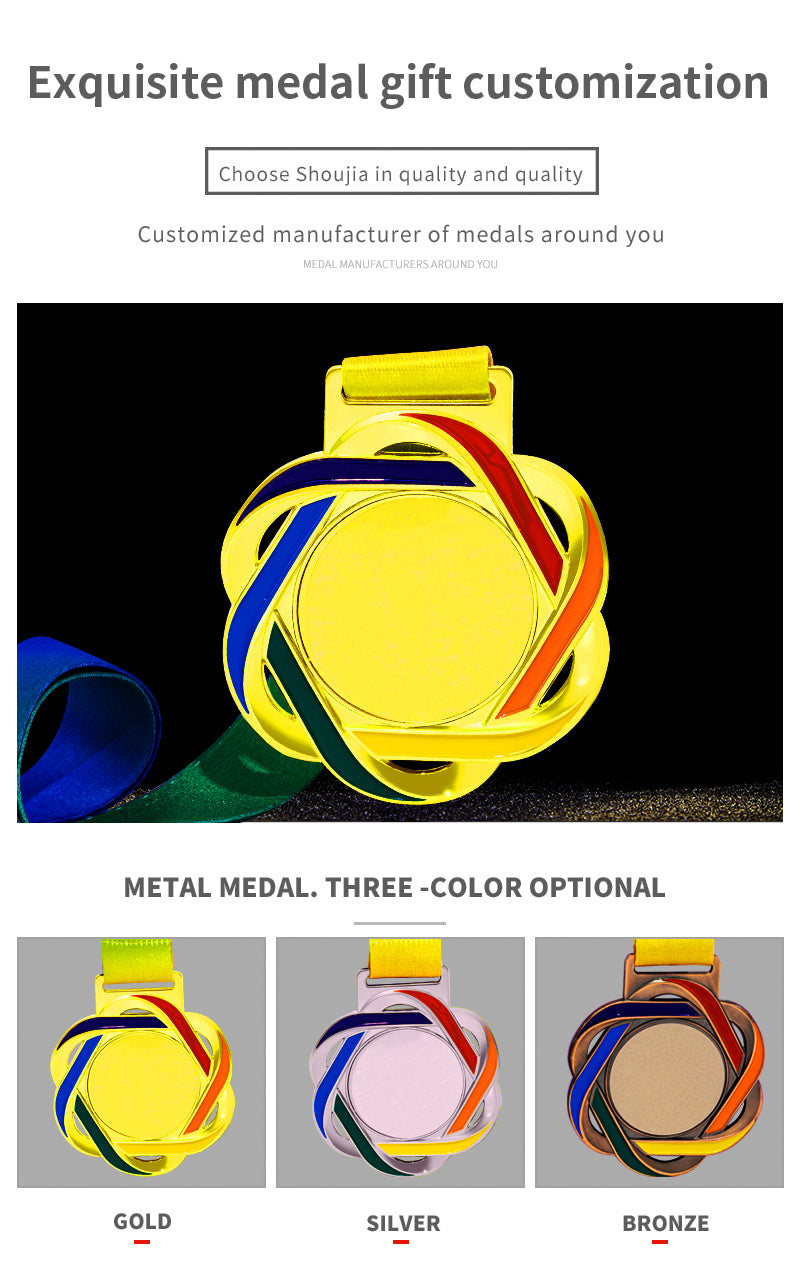 3D Gold Silver Bronze Zinc Alloy Metal Runner Soccer Winners Medals And Ribbons Blank Sport Medal