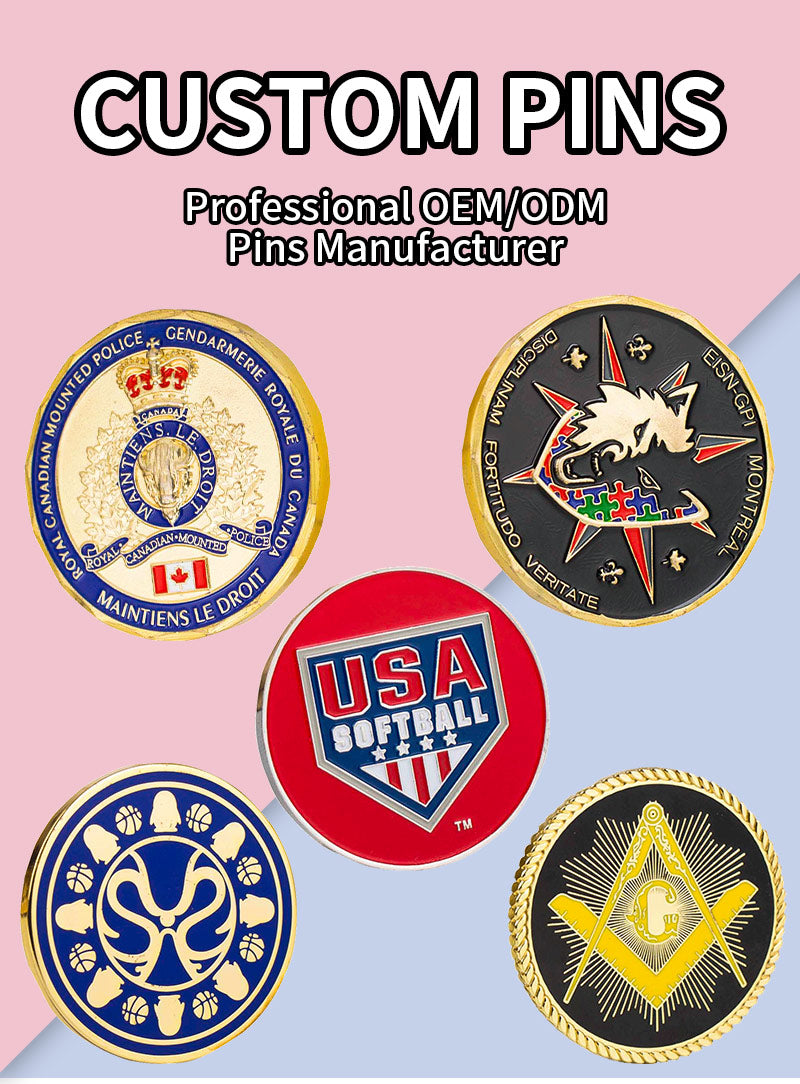 Custom Logo Soft Hard Enamel Pins Manufacture Zinc Alloy Casting Round Brooch Metal Badge Lapel Pin