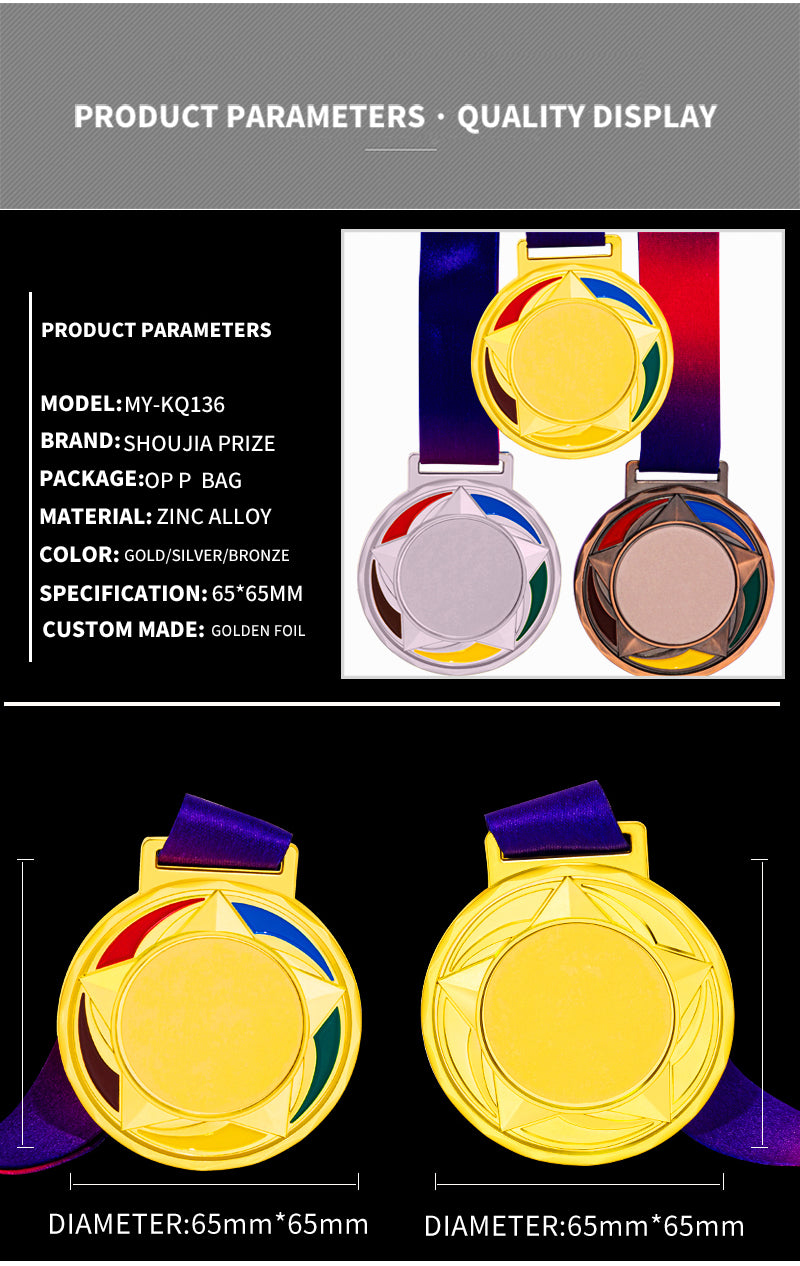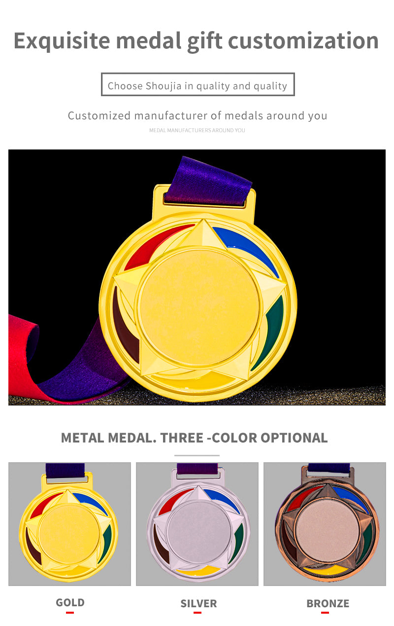 Manufacture Metal Soccer Football Race Volleyball Marathon Medals Sports Custom Gold Award Medal with Ribbon