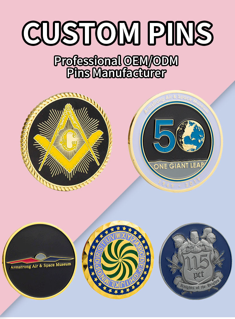 No Minimum Factory Custom Logo Soft Hard Enamel Pins Manufacture Zinc Alloy Casting Round Brooch Metal Badge Lapel Pin